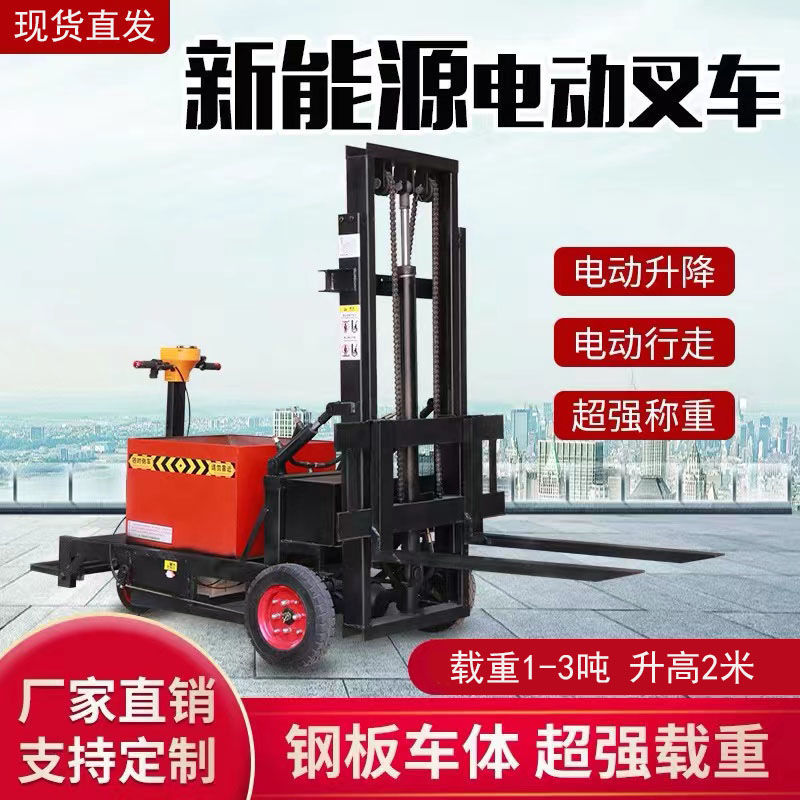 巴林右旗小型电动叉车1吨站驾式2吨液压升高铲车全自动仓储堆高车